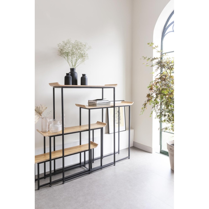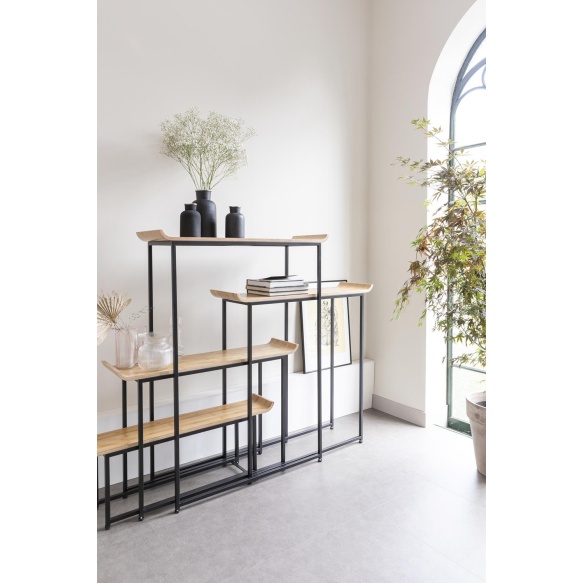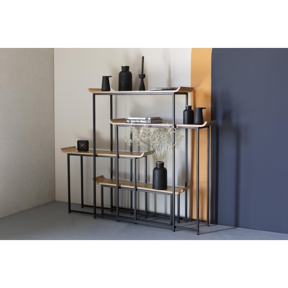 | Tuotteen kuvaus | Vanerihyllyt, päällystetty luonnollisella lakkakerroksella. Matta musta jauhemaalattu runko. |