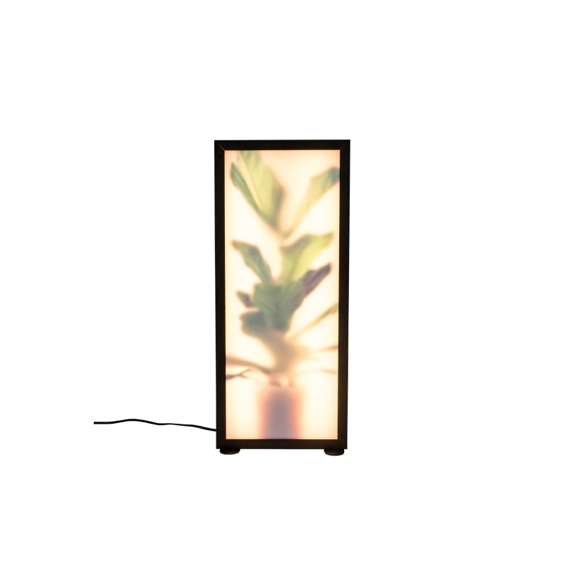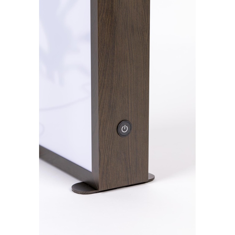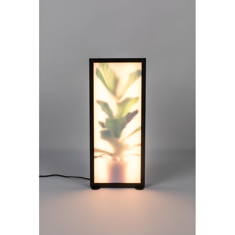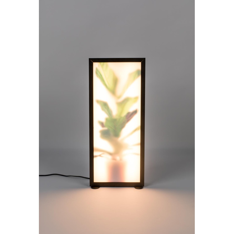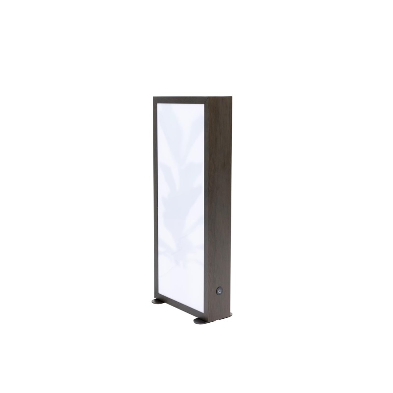 | Tuotteen kuvaus | MDF-laatikko tummalla tammipinnalla. Alumiininen runko 2 akryylilasilla (1 x 50% läpinäkyvyys, 1 x 74% läpinäkyvyys). Musta PVC-kaapeli. Hipaisuhämäräkytkin - Lumen: 320 - Kelvin: 3000K |