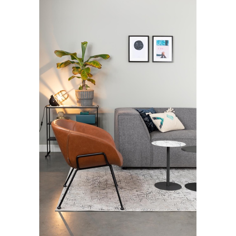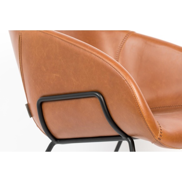 | Tuotteen kuvaus | Tekonahka (50 % polyuretaania ja 50 % polyvinyylikloridia), istuin polyuretaanivaahtoa ja vaneria, musta jauhepinnoitettu teräskehys, muoviset jalanpäät. Koristeompeleet. |