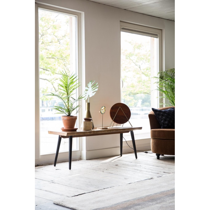 | Tuotteen kuvaus | Pähkinäviilulla päällystetty MDF-istuin, joka on viimeistelty läpinäkyvällä lakalla. Mustat jauhemaalatut teräsjalat. |