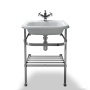 | Tuotteen kuvaus | Allas on valettu marmorista ja on viimeistelty käsin hionnalla. Altaan jalat ja hyllytaso on valmistettu ruostumattomasta teräksestä. Reiät porataan mukana tulevan sabluunan avulla asennusvaiheessa. |