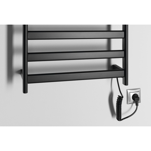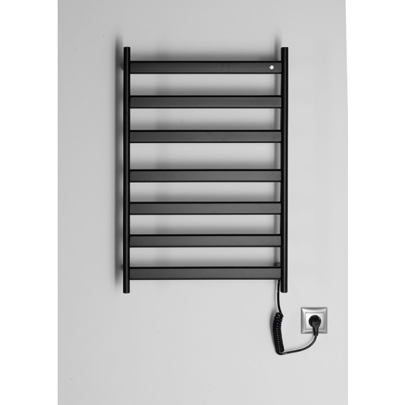 ELIAS-maalatut ruostumattomasta teräksestä valmistetut sähköpatterit on suunniteltu pyyhkeiden ja huoneen lämmittämiseen ja kuivaamiseen, mitä arvostat erityisesti talvella. Patterin sisäpuoli on valmistettu hiilikuidusta (ilman nestemäistä täyttöseosta), mikä varmistaa erinomaisen lämmönjohtavuuden. Taustavalaistu kytkin on integroitu oikeaan yläkulmaan. Runko voidaan kytkeä suoraan pistorasiaan 1,2 m pituisen kierretyn kaapelin ansiosta, joka sijaitsee oikeassa alakulmassa ja jota ei voi muuttaa asentoa.