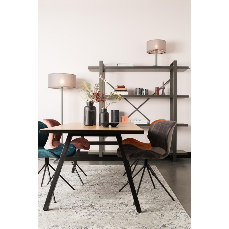 | Tuotteen kuvaus | Polyesteri tekosamettikangas, vaneri-istuin, tiivis vaahtomuovi. Mustat teräsjalat, muoviset jalanpäät. |