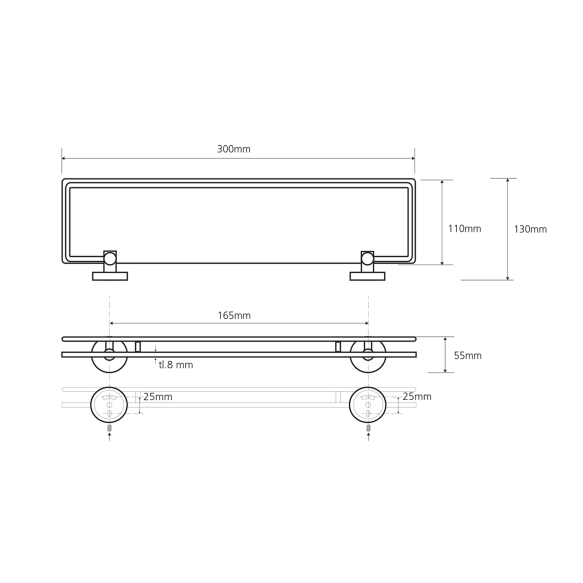 X-ROUND E piirdega klaasist riiul 300x130mm, kroom (300x55x130 mm) X-ROUND E piirdega klaasist riiul 300x130mm, kroom (300x55x130 mm)
