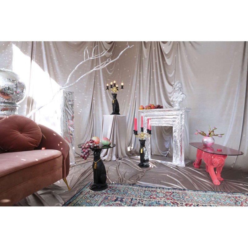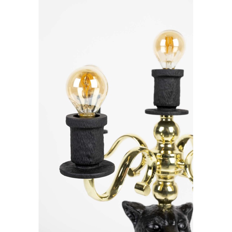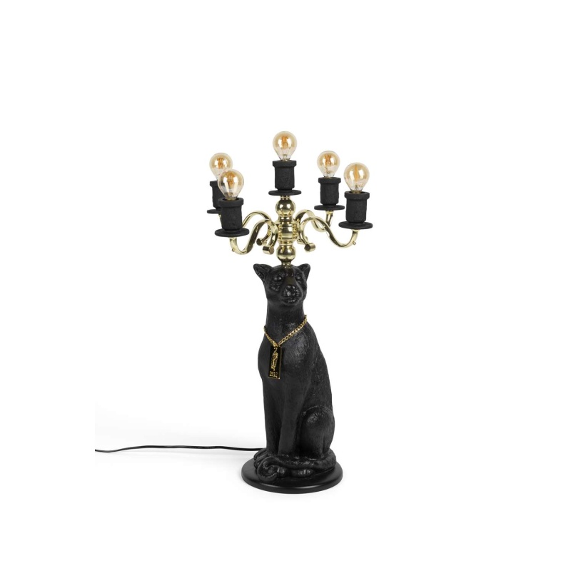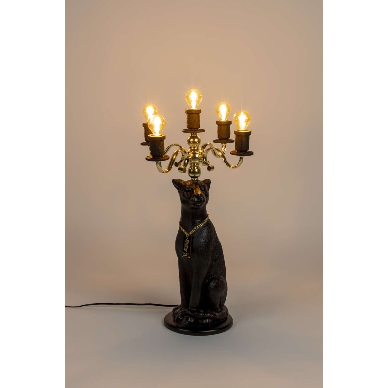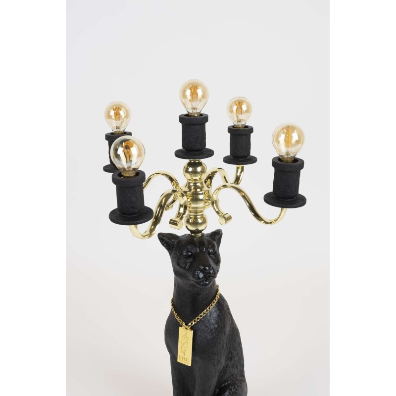| Tuotteen kuvaus | Mustaksi maalattu hartsi. Sähköpinnoitettu rautakynttelikkö 5 lamppupidikkeellä. Musta kumikaapeli. Kullanvärinen alumiinikehys logolla. Virtakytkin. |
