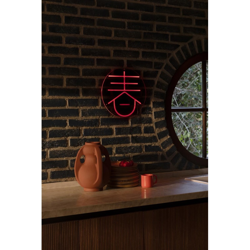 Lisää väriä ja maustetta sisustukseen Dutchbone Syalla. Tämä katseenvangitsija neonvalaisin kiinalaisella luonteella on suunniteltu tuomaan suosikkivuodenaikasi sisätiloihin. Itse asiassa lamppua on neljä eri merkkiä, joista jokainen edustaa eri vuodenaikaa. Kyltti on muodostettu punaisella LED-valolla lasilevyä vasten ja se on täysin muokattavissa mielialaasi. Itse asiassa lampun mukana tulee kaukosäädin, jolla voit himmentää valoa tai välkkyä kynttilän lailla luodaksesi erityisen intiimin tunnelman. Tätä valaisinta voidaan siksi oikeutetusti kutsua ilmeeksi ja se lisää sisustukseesi autenttista ilmettä.