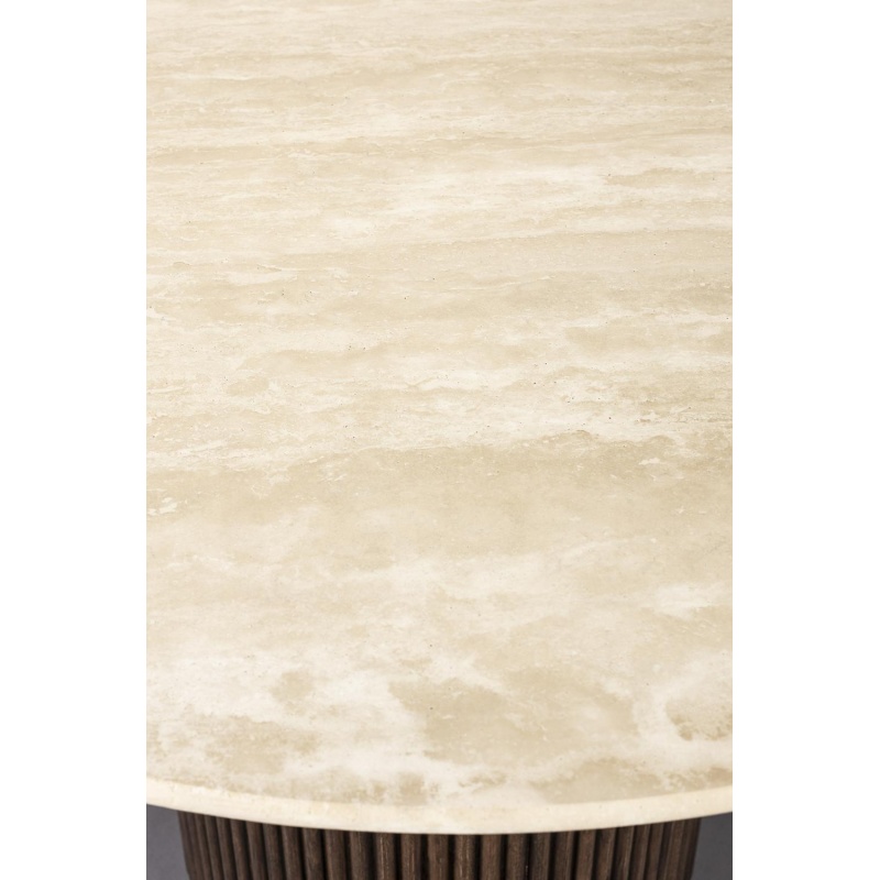 If you like bringing the warmth of a vintage interior into your home but with the quality of today, the Dutchbone Arda is perfect for you. The furniture in this series is made of wood in a deep walnut colour. A shade that contrasts beautifully with the creamy colour of the natural stone top. On the dining table and side table, the wood is further accentuated by the ribbed pattern. But the sideboard and bedside table also stand out because of their design with conical legs, reminiscent of a 1950s interior. With this distinctive furniture, you instantly transform the room into a cosy place.